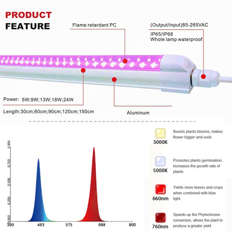 13W T8 Full Spectrum Plant Growth Light IP65 with Ac85-265V