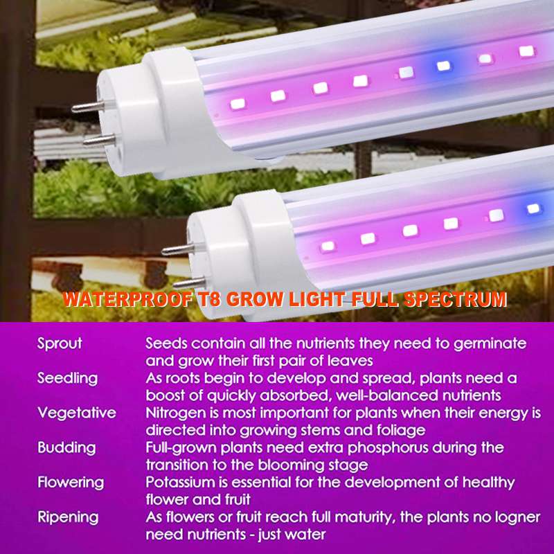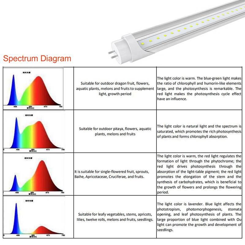 18W LED T8 Grow Lamp IP40 AC85-265V with for Succulents