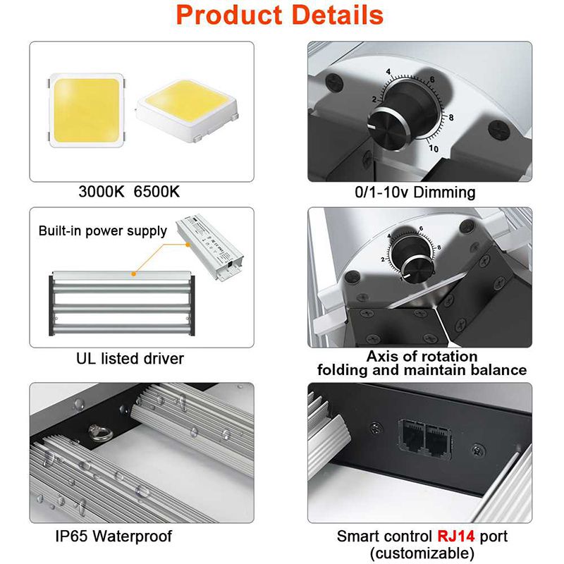 What are the features of 600W 800W 1000W 1200W 1500W 1600W Foldable Grow Lights for Indoor Plants IP65 0-10v Dimmable?