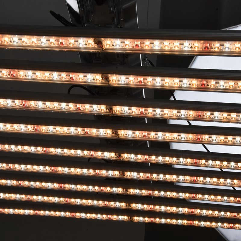 4. Lower operating cost and higher output, can provide strong light output and uniform canopy penetration, so as to obtain the maximum higher output. The footprint of vegetables is 3 x 3 feet, and the footprint of flowers is 2 x 2 feet. The multi-light connection with unified dimming function is particularly conducive to large-scale indoor and commercial planting.