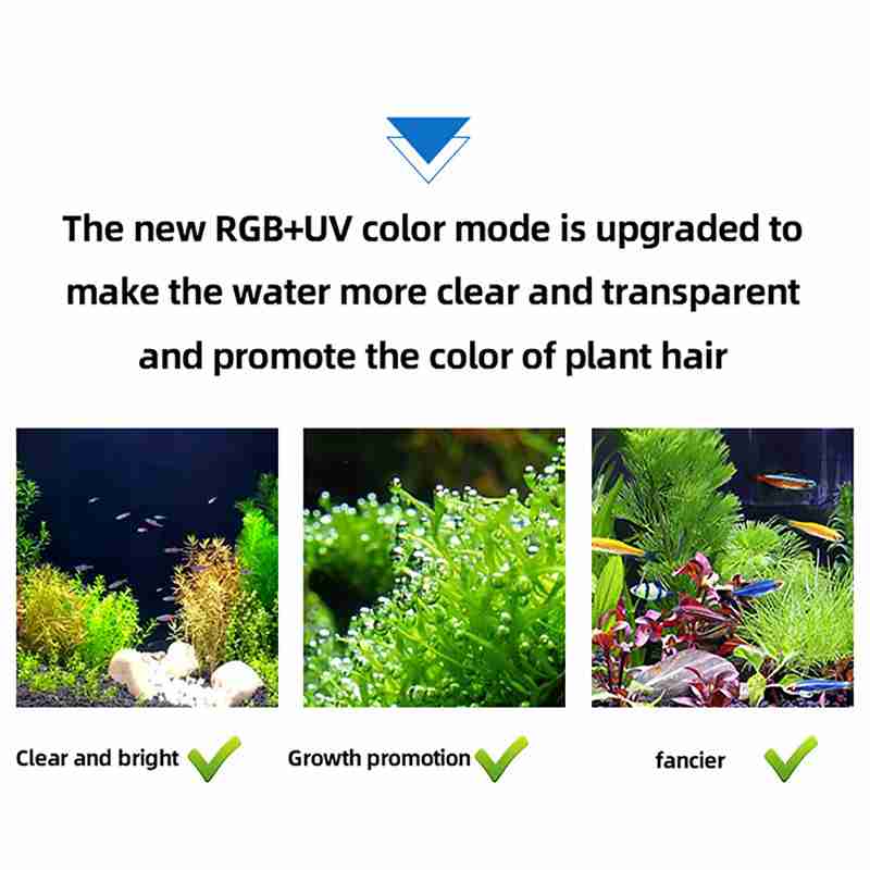 1.24/7 day and night cycle mode: simulates the natural daylight cycle, including sunrise, sunset and moonlight, providing a healthier and more natural environment for fish and plants.