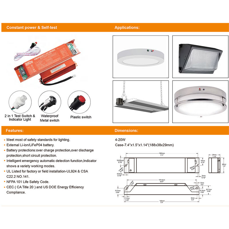 Emergency LED Light Battery 15W 20W Emergency Battery Kit