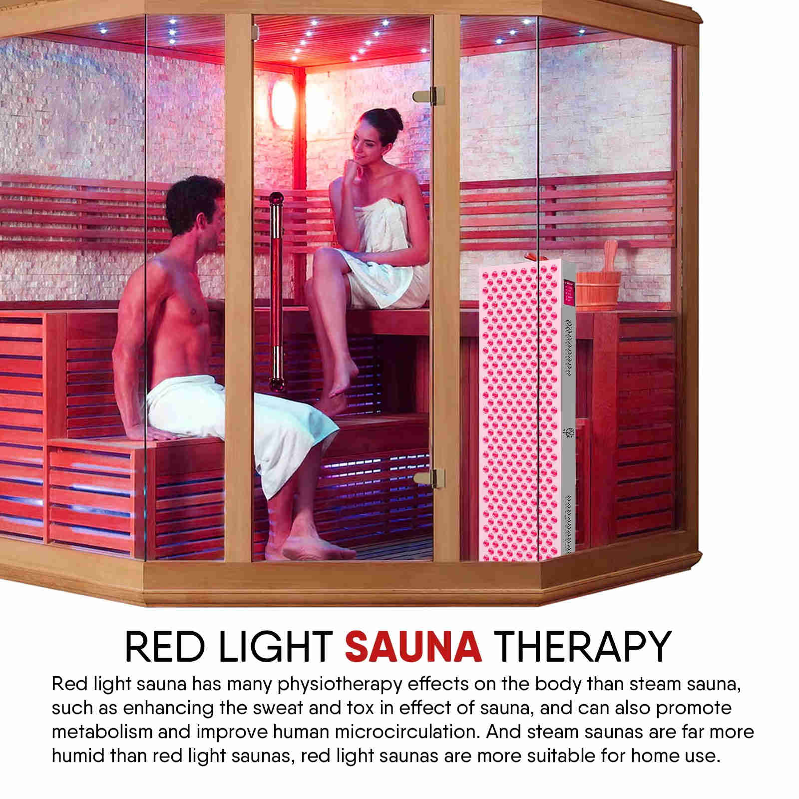 RED LIGHT SAUNA THERAPY:Red light sauna has many physiotherapy effects on the body than steam sauna, such as enhancing the sweat and tox in effect of sauna, and can also promote metabolism and improve human microcirculation. And steam saunas are far more humid than red light saunas, red light saunas are more suitable for home use.