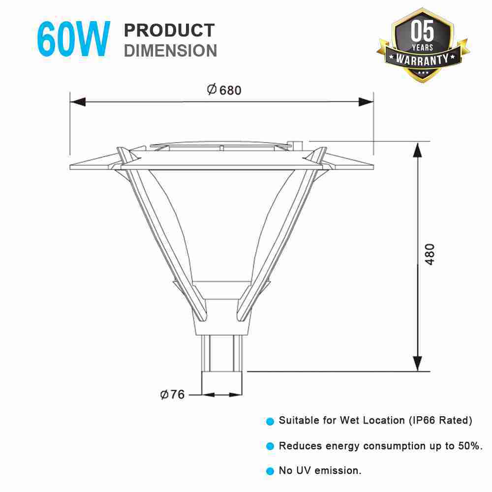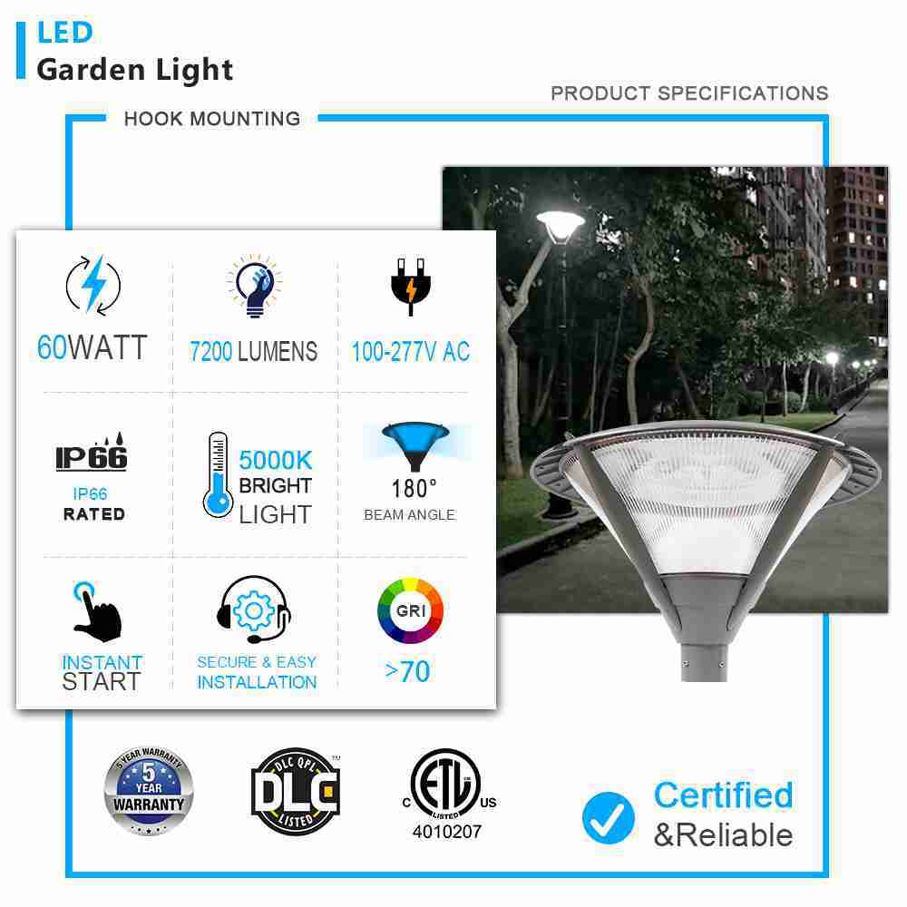 Garden Lamp Light 60W 6000lm IP65 with ETL DLC Listed