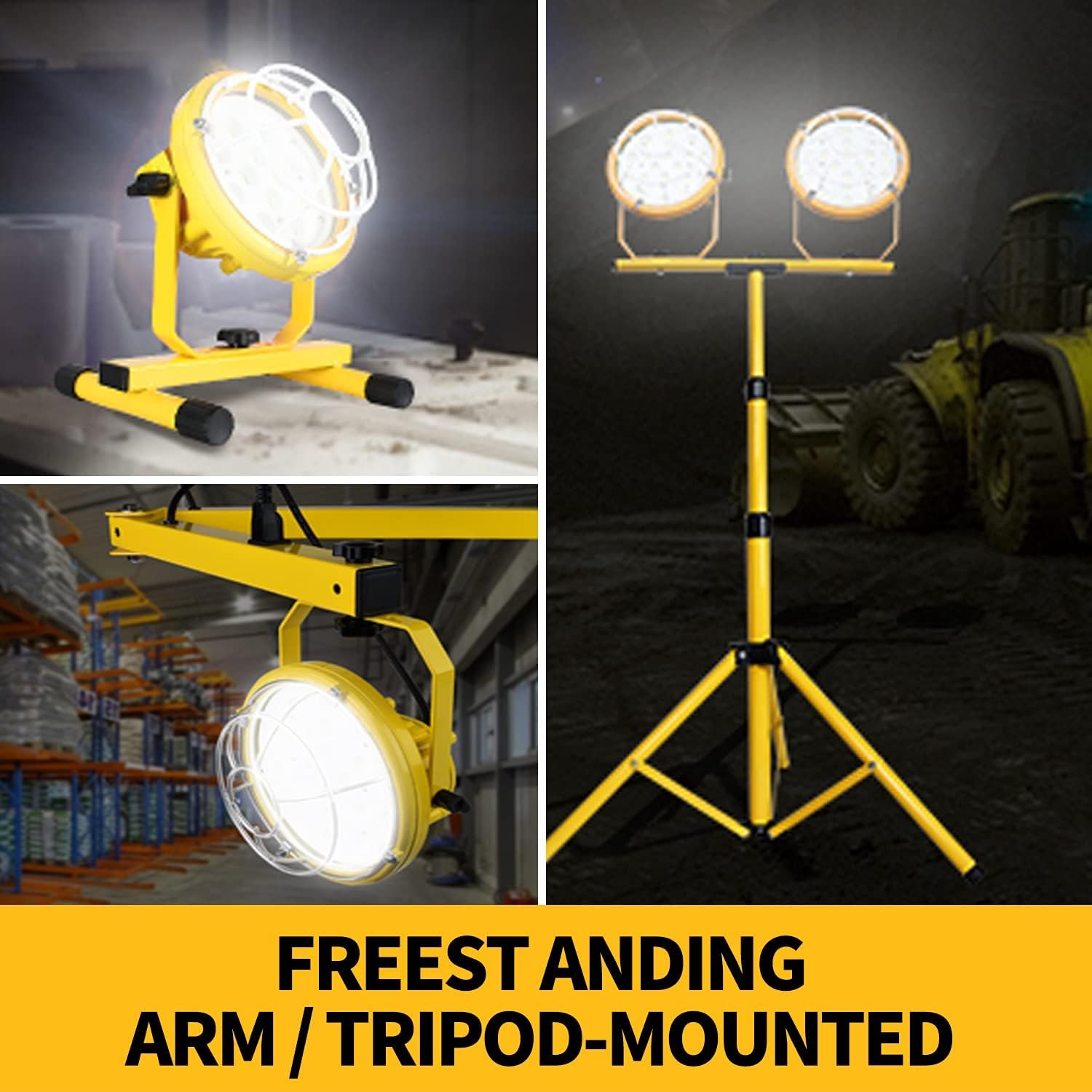 [Safety and Comfort] The base lamp features tempered glass to create a bright and spacious work environment, reducing potential safety hazards. Equipped with a heavy-duty, anti-collision lampshade to prevent accidental collisions. [Waterproof and Corrosion Resistant] The heavy-duty die-cast, safety yellow powder-coated aluminum head housing offers high visibility and excellent corrosion resistance, along with excellent sealing, heat dissipation, and IP65 waterproofing, even in wet locations.