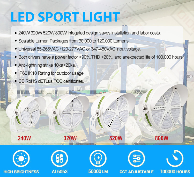 Led Arena Lights 240W 320W 520W 800W 5-Year Warranty for Outdoor Playground