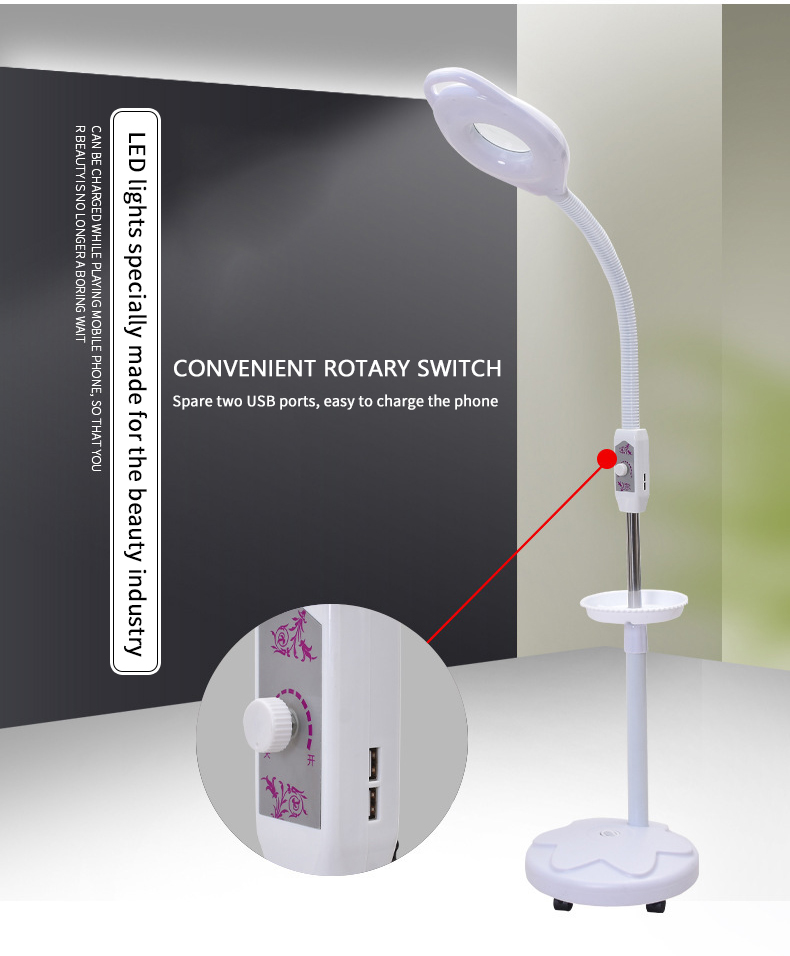 LED Floor Standing Adjustable Magnifier Light for Beauty Salon