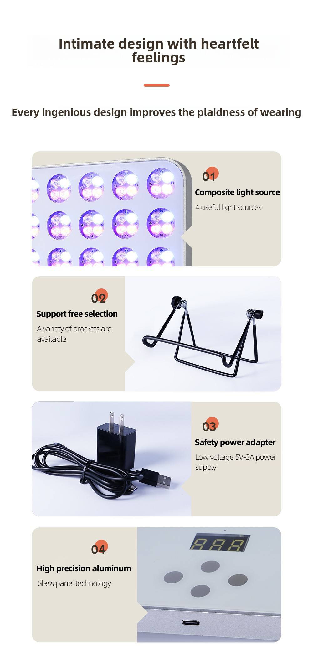 1. Versatility: Four wavelengths meet a variety of skin care needs.