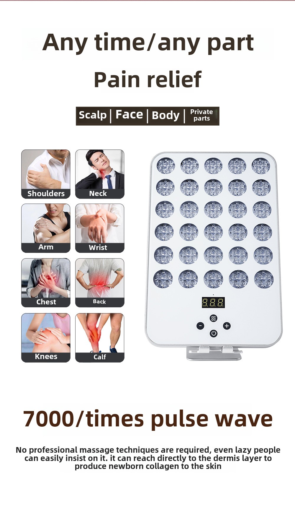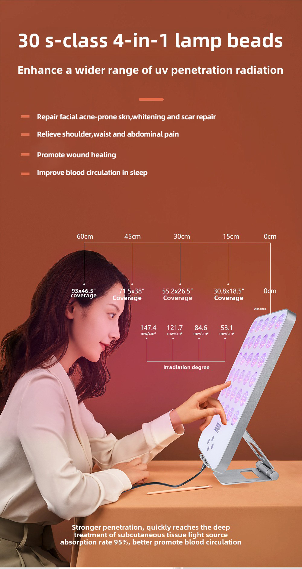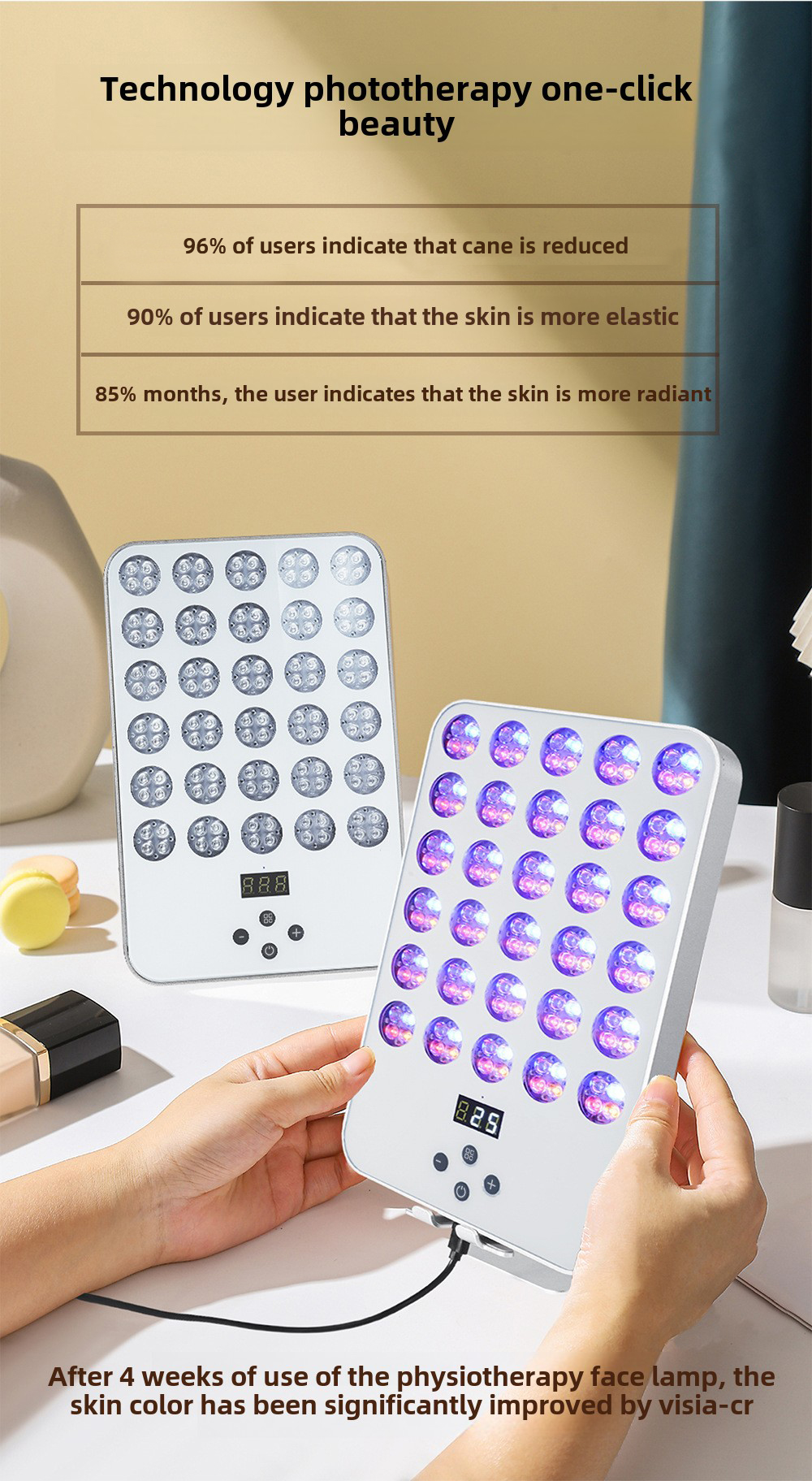 2. 120 LED lights: high-density L ED lamp provides uniform light to ensure the treatment effect.