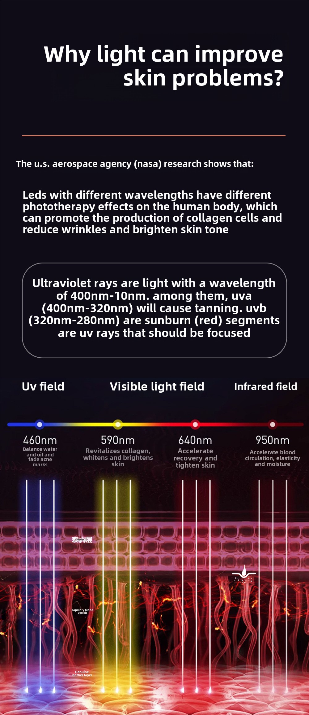 4. Safety: LED light therapy is non-invasive and painless, suitable for long-term use.