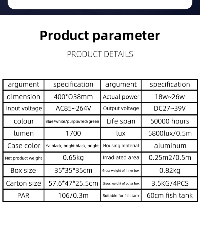 6.Suitable for coral reef tanks: provides the specific spectrum required for coral growth, suitable for use in saltwater aquariums.
