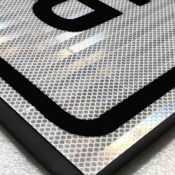 - Radar speed signs feature MUTCD-conforming white HIP reflective sheeting on sign face with black text.