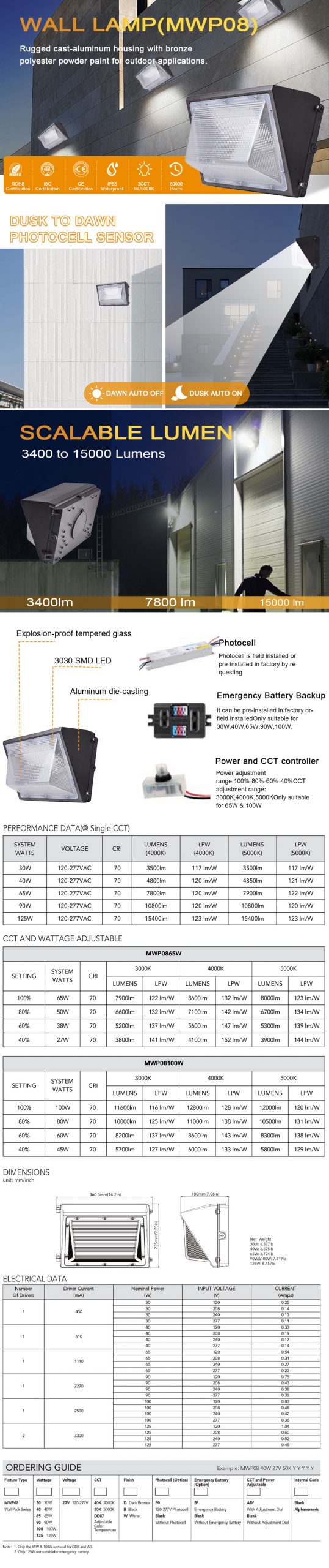 MWP08 Wall Mount Light 30W 40W 65W 90W 125W 120-277VAC