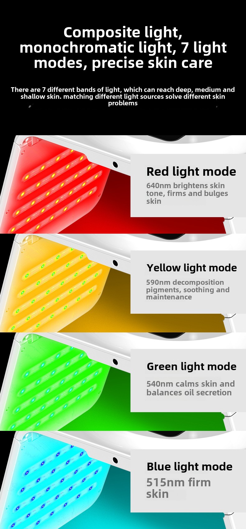 1. Multifunctional: 7 colors of LED light and heat therapy function to meet a variety of skin care needs.