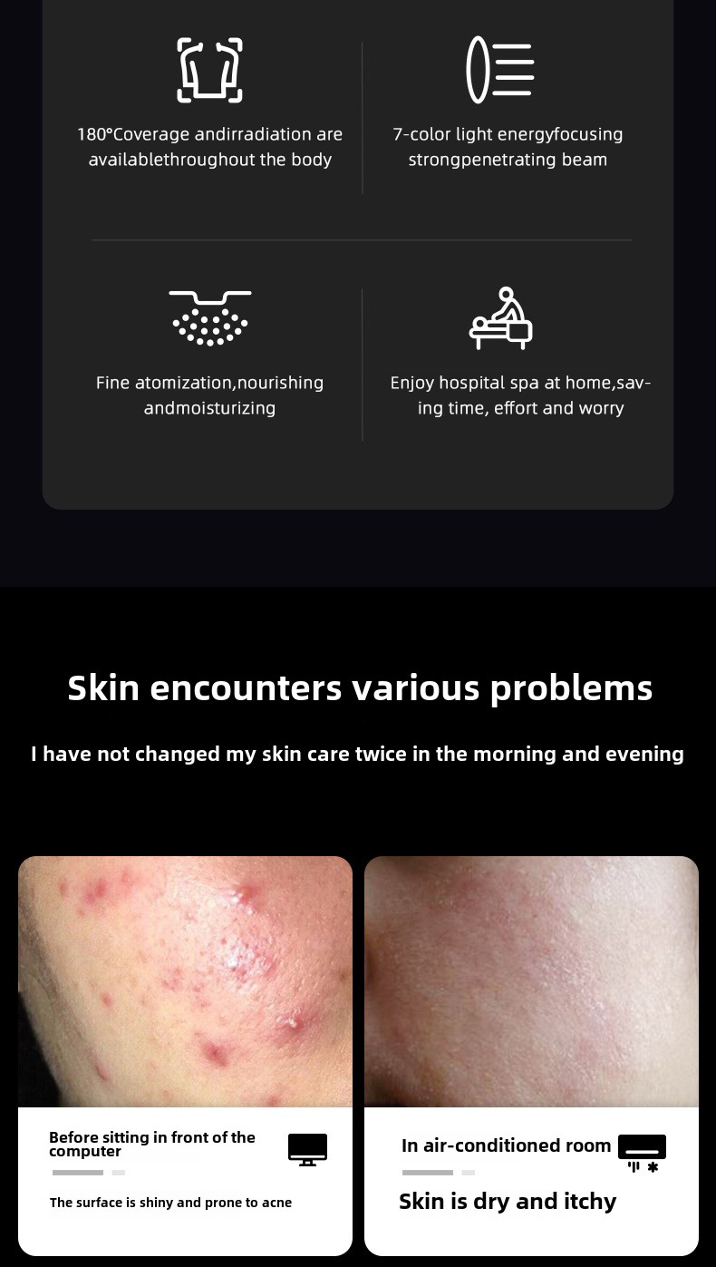 1. The heat therapy function can open pores, promote the absorption of skin care products, and enhance the effect of light therapy.