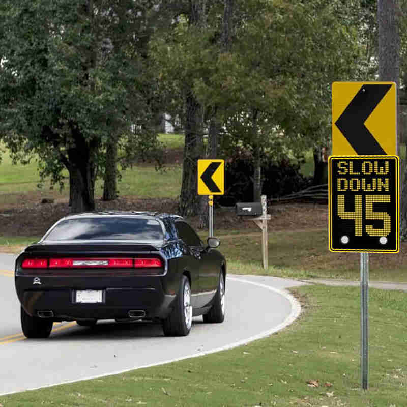 The flexible sign offers the ability to customize two lines with extra-large 18-inch LED digits. The versatile variable messaging sign offers the ability to display custom text or graphics while displaying vehicle speeds. Sign has a rechargeable battery and mountable solar panel that makes this product energy efficient and easy to use in locations where there in sunlight