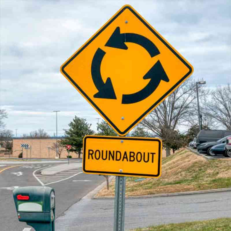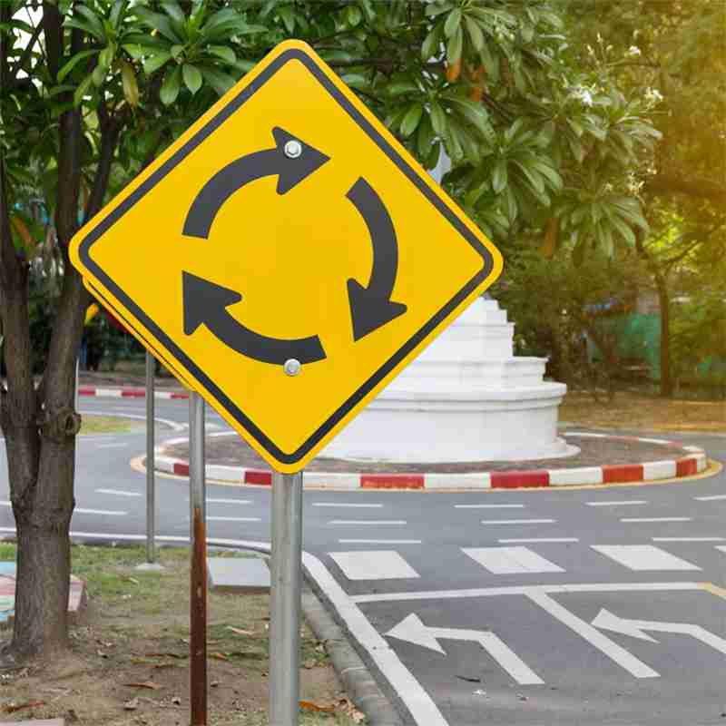 Our bright solar powered LED roundabout sign has high intensity LED lights, eye catching reflective 3M material and can be seen from a great distance. Made with an aluminum alloy board and solar board to MUTCD specifications. Sign has a rechargeable battery and mountable solar panel that makes this product energy efficient and easy to use in locations where there in sunlight.