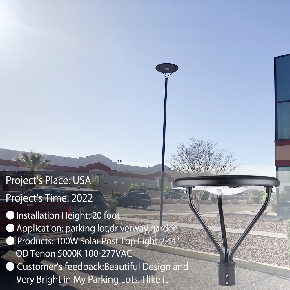 100W Solar Post Top Light 2.44″ OD Tenon 5000K 100-277VAC